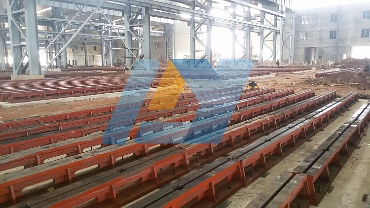 4、將地軌支承點(diǎn)墊好、墊平,包管每個(gè)支撐點(diǎn)受力平均,包管整個(gè)地軌平穩(wěn)。